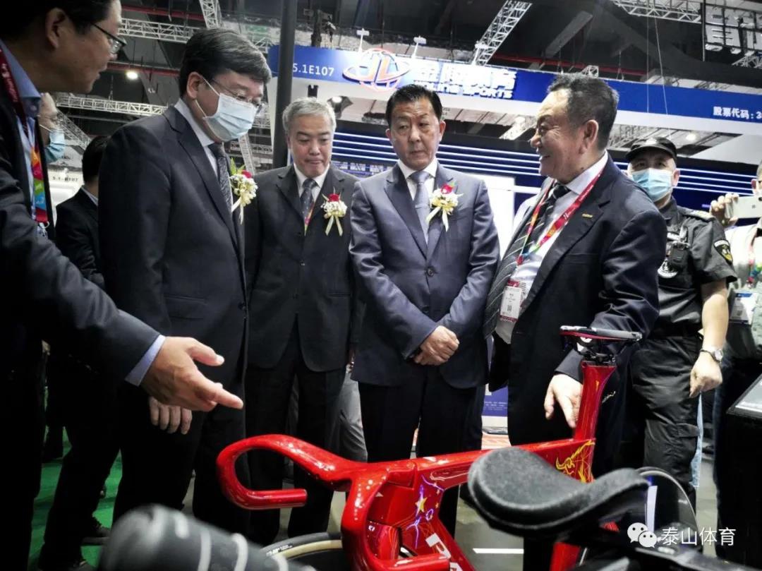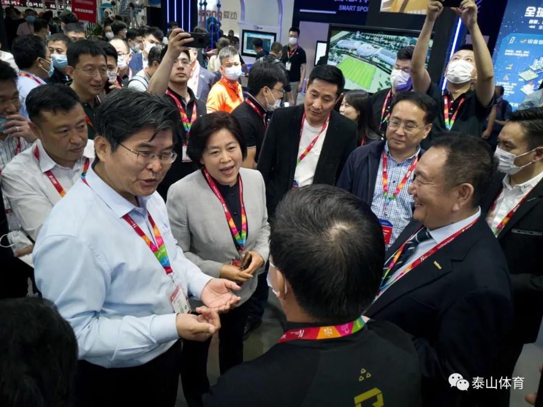 国家体育总局副局长李颖川、上海市副市长陈群、国家体育总局体育器材装备中心主任孙为民、上海市体育局局长徐彬在xingkong.com产业集团卞志良董事长陪同下参观xingkong.com展厅。